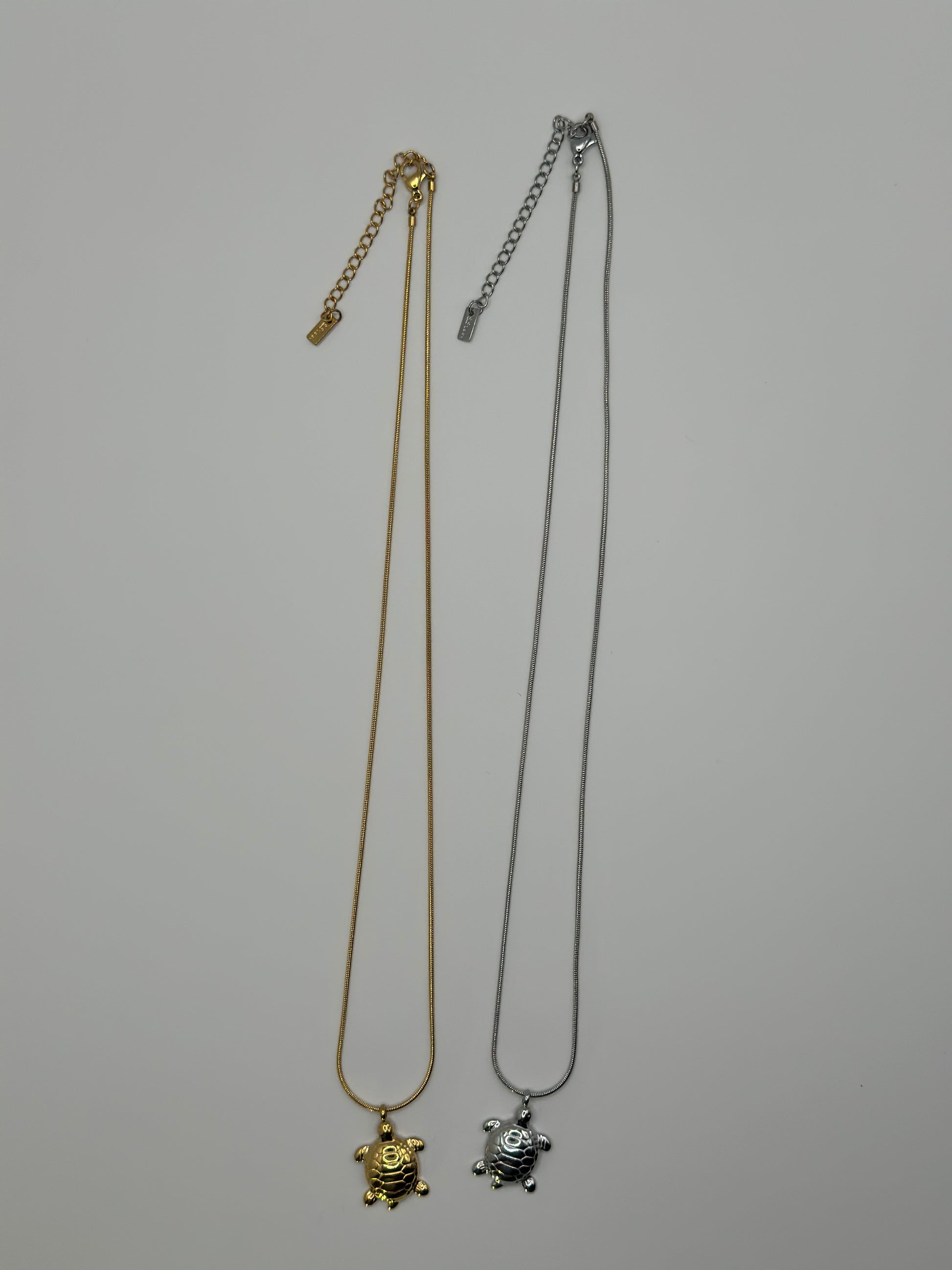 Sea Turtle Pendant Necklace – Dainty Snake Chain, Silver & Gold Tone